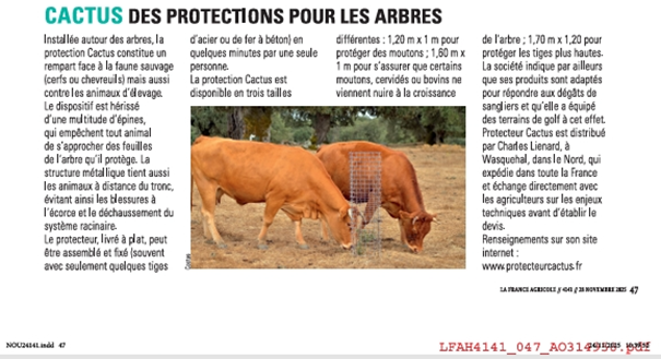 Les revues France agricole, Réussir Viande, Pâtre en parlent: Protecteur Cactus©:
